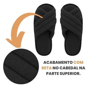 Pantufa Feminina Antiderrapante Chinelo de X 100% Poliéster - 45-46 - Preto