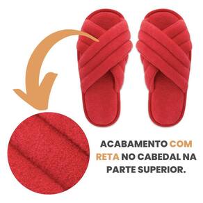 Pantufa Feminina Antiderrapante Chinelo de X 100% Poliéster - 29-30 - Vermelho