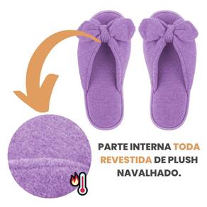 Pantufa Feminina Com Lacinho Chinelo de Quarto Antiderrapante - 41-42 - Lilás