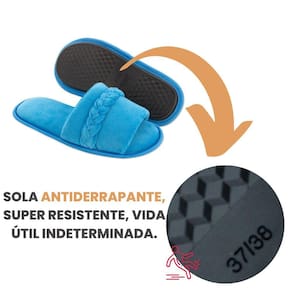 Pantufa Slide Antiderrapante Com Trança Adulto e Infantil - 29-30 - Azul Petróleo