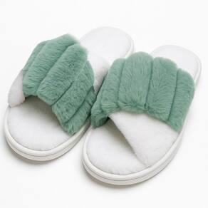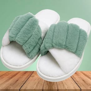 Pantufas Chinelos De Inverno Sapatos Pelúcia Aconchegantes - 10 cm - Verde