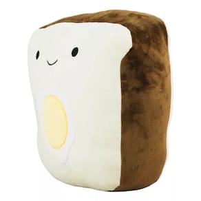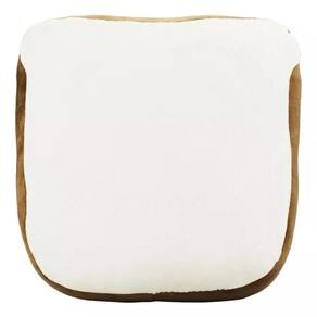 Pelúcia no formato de um pão com rosto fatiado recheio de ovo e 32 x 14 x 32 cm de dimensão. Material: poliéster; Enchimento: fibra de poliéster; Produto certificado por Órgão acreditado pela CGCRE do INMETRO