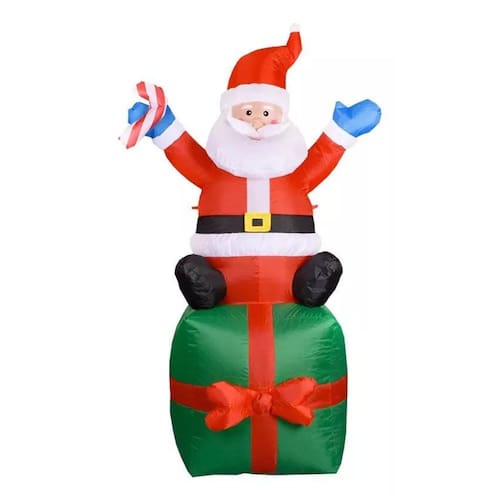 Produto Decorally Home Decor: Desenvolvido com qualidade e atenção aos detalhes, tornando sua decoração natalina especial. Design Divertido: Papai Noel Caixa de Presente traz uma atmosfera alegre e envolvente para sua decoração. Tamanho Ideal: Com 1,80m de altura, é perfeito para destacar qualquer espaço, seja em jardins, sacadas ou dentro de casa. Fácil Instalação: O inflador embutido garante montagem rápida e prática. Basta conectar à tomada e seu Papai Noel estará pronto para subir a escada Iluminação LED: Equipado com luzes LED, criando um efeito mágico e luminoso durante a noite.