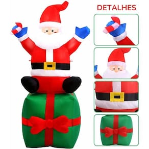1 Papai Noel Caixa de Presente 1,80m 1 Fonte de alimentação - BIVOLT 1 Soprador de ar 2 Cabos fixadores