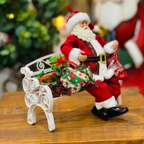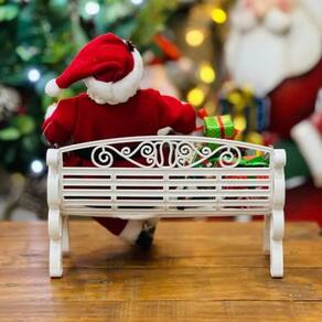 Esse encantador Papai Noel traz toda a magia do Natal em um momento de pausa e alegria. Sentado em um banco com presentes ao seu lado, ele transmite acolhimento e generosidade, perfeito para decorar aparadores, estantes ou o cantinho especial da sua casa durante as festas. Os detalhes delicados e o acabamento artesanal tornam essa peça única e cheia de charme natalino. Medidas: 28cm de altura Material: Tecido, poliresina, plástico e ferro Observação: Pode haver leve variação na cor da foto devido às configurações do seu monitor e luz.