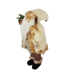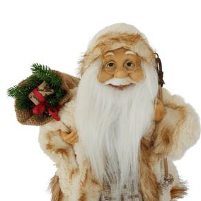 Papai Noel com Saco de Presentes 45cm com Casaco de Pele.