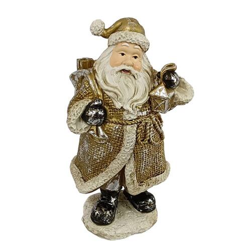 Papai Noel de Natal Dourado de Resina Decorativo 17cm