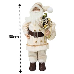 Papai Noel Decor Branco e Bege Luxo 60cm Casaco Guizos Lã