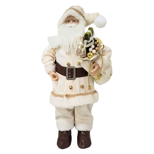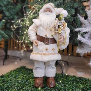 Papai Noel Decor Branco e Bege Luxo 60cm Casaco Guizos Lã