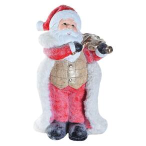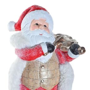 Este Papai Noel é provavelmente confeccionado em um material resistente às intempéries, como resina ou plástico, adequado para suportar as condições ao ar livre. A figura provavelmente representa o Papai Noel em sua vestimenta tradicional vermelha e branca, possivelmente segurando um saco de presentes ou outro acessório natalino, o que é comum nesses tipos de decorações. Com seu tamanho de 43 cm de altura, ele é uma peça que se destaca em meio a outras decorações natalinas, ideal para adicionar um toque festivo ao ambiente