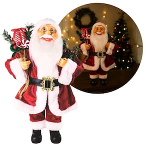 01 Papai Noel Decorativo em Veludo Vermelho Premium com saco de presentes decorado