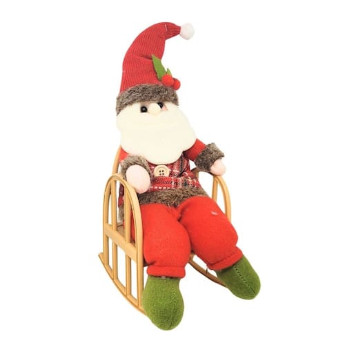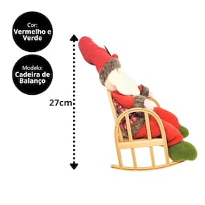 Papai Noel Decor Pelúcia Xadrez na Cadeira de Balanço 28cm