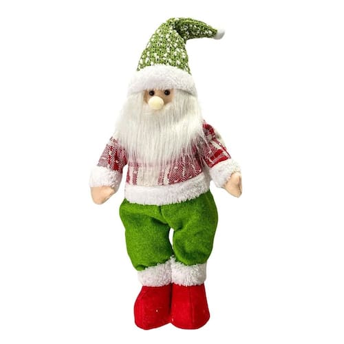 -01 Unidade Papai Noel Em pé Pelúcia Funny Tricot Verde e Vermelho 40cm - Magizi