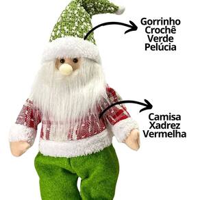 Papai Noel Em Pé Pelúcia Funny Tricot Verde e Vermelho 40cm