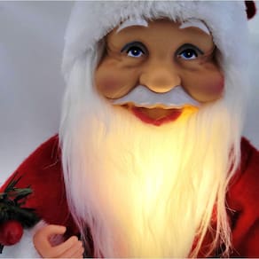 Por isso trazemos até você super enfeite natalino, com as figuras do querido papai noel, este modelo com tradicional na cor vermelho tradicional e branco com barba iluminada!