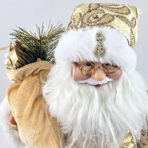 Cor: branco, bege e dourado Por Que Escolher o Papai Noel Branco e Dourado