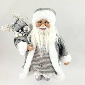 Papai Noel Luxo Prata E Cinza Boneco De Natal Decorativo Decore Seu Natal com o Papai Noel Branco e Cinza Decorativo Adicione um toque de elegância à sua decoração natalina com o nosso Papai Noel Branco e Cinza Decorativo Esta peça charmosa traz um visual moderno e sofisticado, perfeito para realçar o espírito das festas em qualquer ambiente.