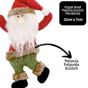 Papai Noel Pendente de Pelúcia Modelo Scotch 22cm Vermelho, Verde e Marrom