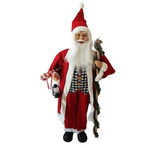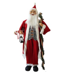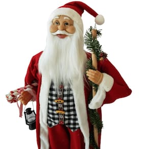 Papai Noel com 1,10 metros de altura, estrutura reforçada em Polipropileno e braços em polietileno com reforço de arame. As roupas em material Premium como, o casaco longo, a calça e o gorro vermelho em feltro com bordas de pele branca, o colete em flanela xadrez com forro de TNT e renda colorida com botões de madeira, o lampião e o rosto, perfeito e carismático, são detalhes que o deixam mais charmoso e fofo.