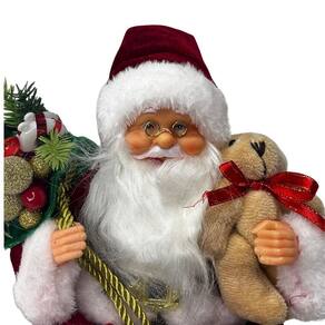 Papai noel sentado repetidor vm magizi 30cm 29019 o papai noel repetidor é uma figura natalina divertida e inusitada, que encanta crianças e adultos com seu comportamento peculiar: ele repete tudo o que ouve vestido com o tradicional traje vermelho com detalhes brancos, botas pretas e um cinto largo, ele também traz o clássico gorro com pompom na ponta e uma longa barba branca. Diferente do bom velhinho tradicional, o papai noel repetidor possui um mecanismo mágico que o faz imitar automaticamente as palavras e sons que escuta, geralmente com uma voz engraçada e um leve atraso. Quando alguém fala com ele seja um feliz natal, um pedido de presente ou uma risada ele responde repetindo exatamente o que foi dito, o que garante muitas gargalhadas.