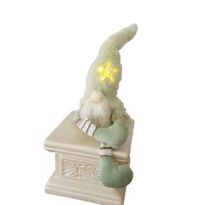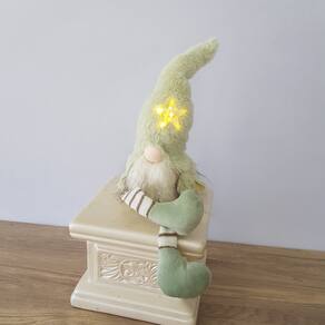 PAPAI NOEL SENTADO VERDE 50cm - 50 cm, MODELO SENTADO COM ILUMINAÇÃO NO GORRO