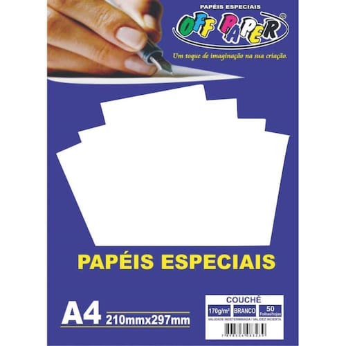 Papel Especial Couchê Branco 170g c/ 50 folhas.
