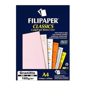 - Marca: Filipaper - Modelo: Granitto - Referência: FP 00962 - Papel Especial - Formato: A4 21 x 29 cm. - Cor: Pink - Quantidade: 100 Folhas. - Gramatura de 90g/m