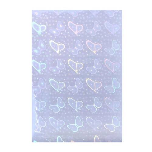 01 Pacote com 50 folhas Papel Adesivo Holográfico Vinil Borboletas A4.