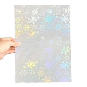 01 Pacote com 50 folhas Papel Adesivo Holográfico Vinil Flocos de neve Snow A4.