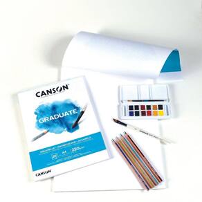 Os blocos Canson Graduate Aquarelle possuem um papel branco, resistente e com textura fina. São compostos por 20 folhas de 250 g/m². São ideais para iniciação à técnica de pintura em aquarela e obter os melhores resultados.