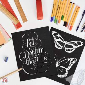 Esta cartolina de capa preta de 100 libras é uma excelente escolha para suas necessidades de papel! É lindo e o acabamento preto fosco é perfeito para álbuns de recortes, cartões de visita, cartões, convites, anúncios, artigos de papelaria, artes e ofícios. Inclui excelentes características de corte, corte e dobragem, além de boa retenção, encaixe e resistência da tinta.