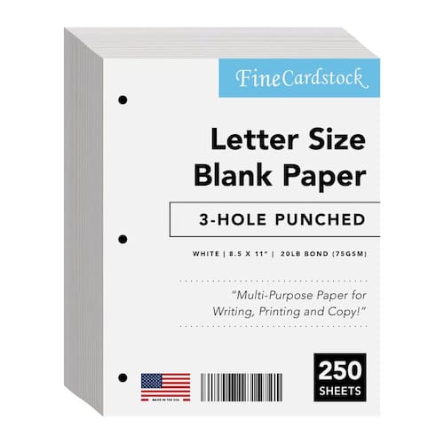 - Papel multiuso perfurado de 3 furos para cópia, escrita e impressão