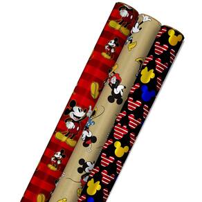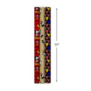 Hallmark Papel de embrulho Disney Mickey Mouse com linhas cortadas no verso (pacote com 3: 60 m²) para aniversários, Natal, Hanukkah, chás de bebê e mais - 60 pés quadrados: cada rolo neste pacote de 3 papéis de embrulho mede 76 cm de largura por 2,4 m de comprimento para 2,9 metros quadrados por rolo. Total de 5,6 metros quadrados no conjunto. - Três designs alegres: o pacote de embrulho para presente apresenta Mickey Mouse em um fundo listrado vermelho, Mickey Mouse e Minnie Mouse dançando em um fundo marrom claro e fileiras de silhuetas de cabeça do Mickey Mouse e Minnie Mouse em listras azul, amarela e vermelha em preto. - Linhas de corte na parte de trás: cada rolo de papel de embrulho premium apresenta linhas de grade no verso para corte reto e presentes perfeitamente embrulhados. - Para qualquer ocasião: designs coloridos e versáteis elevam facilmente qualquer presente e iluminam celebrações durante todo o ano, incluindo aniversários, chás de bebê e feriados como Natal, Hanukkah, Dia dos Namorados e muito mais. - Feito de materiais de papel de alta qualidade, o papel de embrulho Hallmark é feito com papel de florestas bem gerenciadas