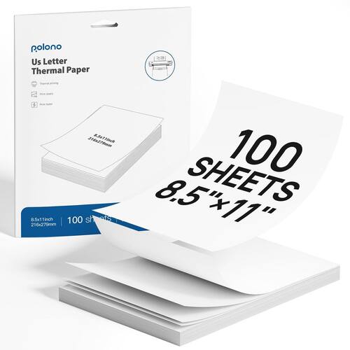 POLONO D810 Thermal Printer Paper 8.5 x 11 Inch, Advanced Thermal Printing, US Letter Size Thermal Paper Compatible with D810, Size 8.5" x 11", 100 Sheets - Especificações – Papel térmico de 21 x 28 cm, 100 papéis por pacote. Observação: o papel de impressora térmica POLONO é adequado apenas para impressora térmica de letras, não é adequado para impressora tradicional a jato de tinta ou laser - Uso: as duas extremidades do papel devem estar na mesma linha reta para garantir que a impressão não seja deslocada. Observe que o lado do papel com as marcações pretas é o verso e precisa ser impresso virado para baixo, caso contrário, ele será impresso em branco - Qualidade premium – o papel térmico POLONO usa tecnologia térmica avançada, que oferece resultados de impressão mais claros e pode ser preservado por até dez anos. Nunca se preocupe com o contrato de impressão de papel térmico, fatura, recibos, etc., não pode durar muito tempo - Sem tinta – Papel térmico térmico elimina a necessidade de tinta e utiliza apenas a impressora e o papel, o que é uma nova maneira de impressão econômica. Observe que o papel de impressora térmica é compatível com impressoras térmicas Letter e não é adequado para impressoras a laser ou jato de tinta - Amplamente aplicável – O papel térmico de letras é adequado para vários cenários de impressão portáteis, como negócios, viagens, atividades ao ar livre e escritório; você pode colocá-lo em sua pasta ou mochila e pode imprimir em qualquer lugar, a qualquer hora. Ideal para impressão de negócios e viagens