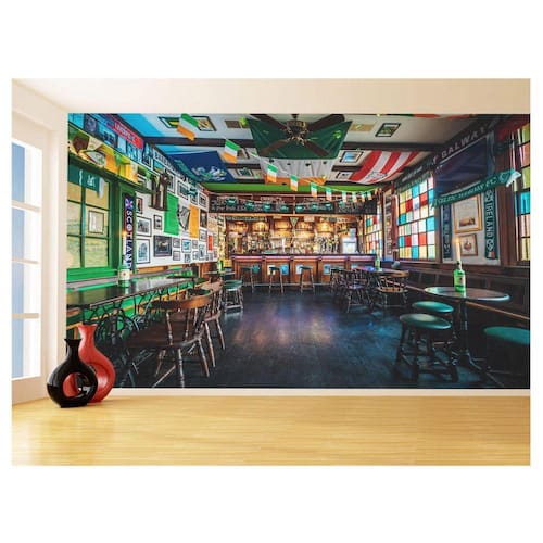 A impressão é feita em vinil adesivo. É um material lavável, impermeável, autocolante e antimofo. O produto cobre uma área de 3,50m, contando com 1,75 metro de altura por 2 metros de largura.