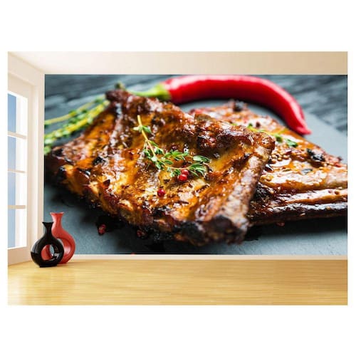 A impressão é feita em vinil adesivo. É um material lavável, impermeável, autocolante e antimofo. O produto cobre uma área de 3,50m, contando com 1,75 metro de altura por 2 metros de largura.