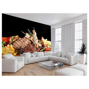A impressão é feita em vinil adesivo. É um material lavável, impermeável, autocolante e antimofo. O produto cobre uma área de 3,50m, contando com 1,75 metro de altura por 2 metros de largura.