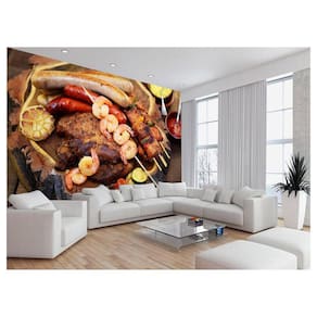 A impressão é feita em vinil adesivo. É um material lavável, impermeável, autocolante e antimofo. O produto cobre uma área de 3,50m, contando com 1,75 metro de altura por 2 metros de largura.