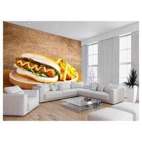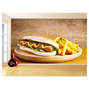 Papel De Parede 3D Alimentos Hot Dog Com Fritas 3,5M Al463
