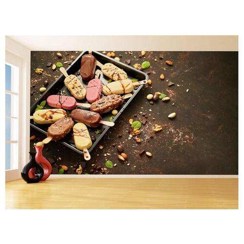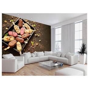 A impressão é feita em vinil adesivo. É um material lavável, impermeável, autocolante e antimofo. O produto cobre uma área de 3,50m, contando com 1,75 metro de altura por 2 metros de largura.