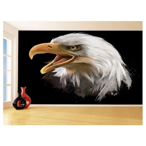 Papel De Parede 3D Animais Ave Aguia Rosto Olho 3,5M Anm286