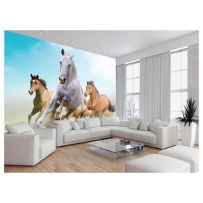 Papel De Parede 3D Animais Cavalos Correndo Céu 3,5M Anm298