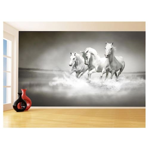Papel De Parede 3D Animais Cavalos Correndo Céu 3,5M Anm302