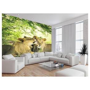 Papel De Parede 3D Animais Leão Família Casal 3,5M Anm514