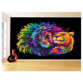 Papel De Parede 3D Animais Leão Família Casal 3,5M Anm533