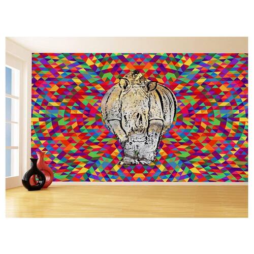 Papel De Parede 3D Animais Pop Art Rinoceronte 3,5M Pxa473