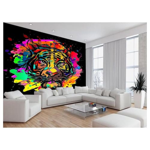 Papel De Parede 3D Animais Tigre Rosto Arte Cor 3,5M Anm563