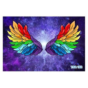A impressão é feita em vinil adesivo. É um material lavável, impermeável, autocolante e antimofo. O produto cobre uma área de 3,50m, contando com 1,75 metro de altura por 2 metros de largura.