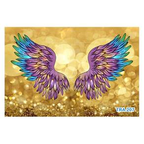 A impressão é feita em vinil adesivo. É um material lavável, impermeável, autocolante e antimofo. O produto cobre uma área de 3,50m, contando com 1,75 metro de altura por 2 metros de largura.