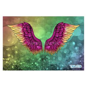 A impressão é feita em vinil adesivo. É um material lavável, impermeável, autocolante e antimofo. O produto cobre uma área de 3,50m, contando com 1,75 metro de altura por 2 metros de largura.